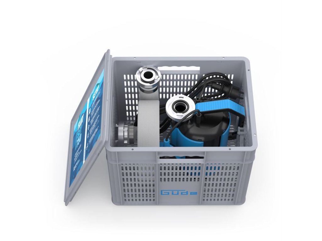 Výkonná sada GÜDE 750, určená pro případ povodní, odvodnění zatopeného sklepa, zaplaveného staveniště ap. Robustní čerpadlo s motorem o výkonu 750 wattů dodává až 12 000 litrů za hodinu a snadno si poradí s částicemi o průměru až 22 milimetrů. Díky desetimetrové tlakové hadici a stupni krytí IPX8 je čerpadlo univerzální a zůstává spolehlivé i při úplném ponoření. Vše je dodáváno v praktickém přepravním boxu s víkem, který umožňuje rychlý přístup a zajišťuje úhledné, prostorově úsporné skladování.