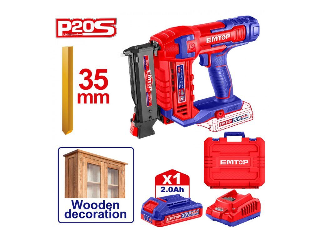 › Aku nářadí › Aku hřebíkovačky / sponkovačky › Aku hřebíkovačka 20V na hřebíky bez hlavy do dřeva L-35mm 1x2.0Ah