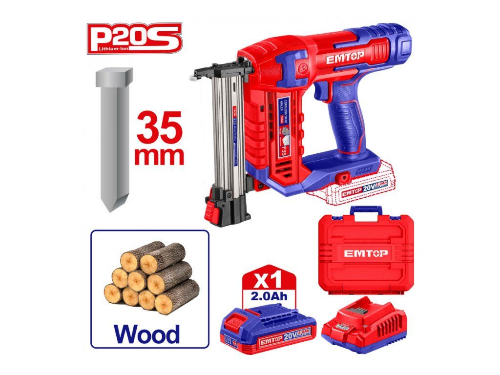 › Aku nářadí › Aku hřebíkovačky / sponkovačky › Aku hřebíkovačka 20V na hřebíky s hlavou do dřeva L-35mm 1x2Ah