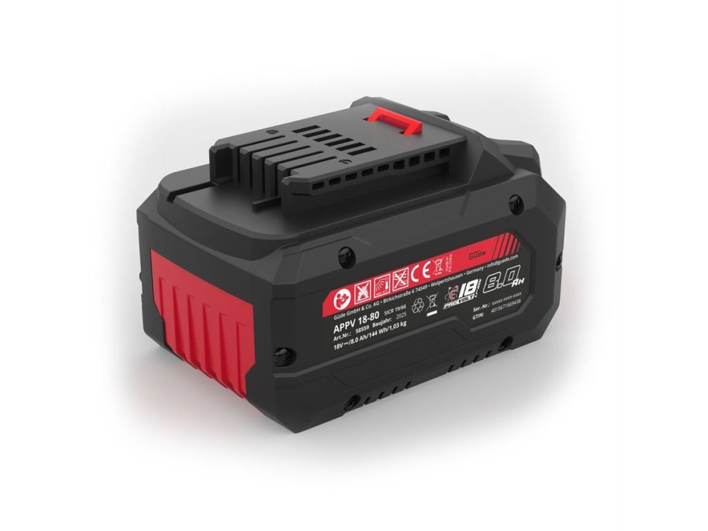 Lithium-iontový akumulátor GÜDE, vhodný pro akumulátorové nářadí ad. techniku řady 18V E³ AKKUSYSTEM-GRUPPE.