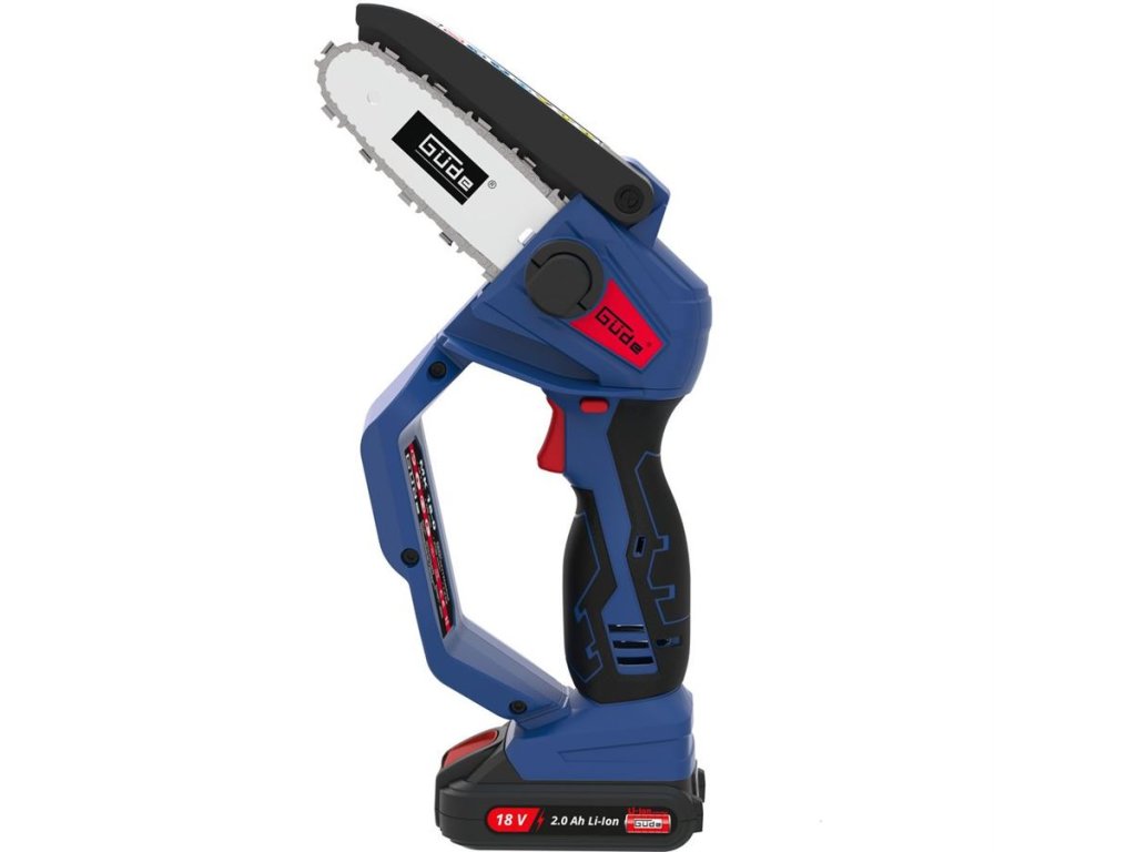 Ruční řetězová pila GÜDE, určená k prořezávání větví stromů nebo rychlému seříznutí stavebního (profilového) dřeva. Pohotové zkrácení lišt, latí, prken, hranolů aj. řeziva.