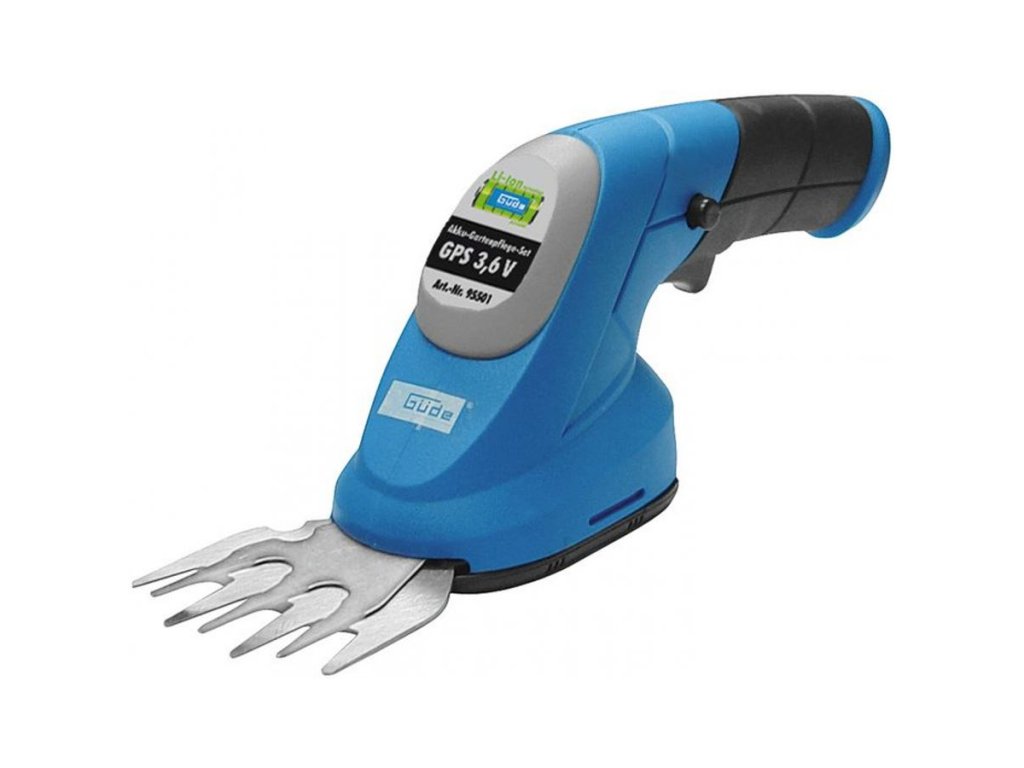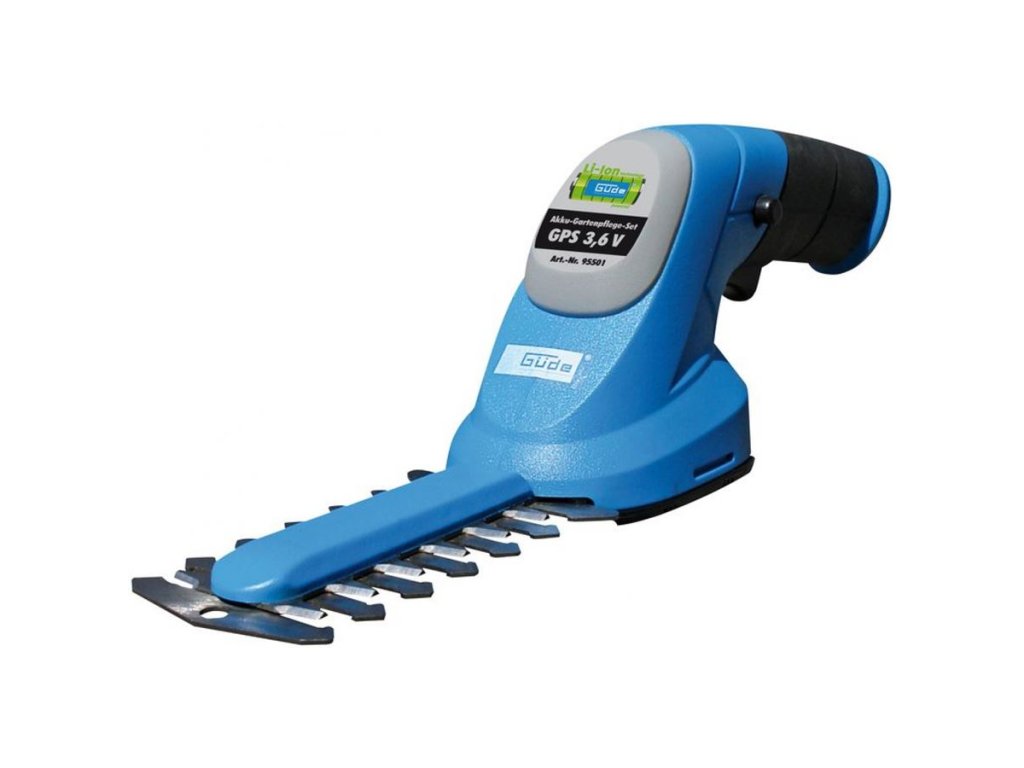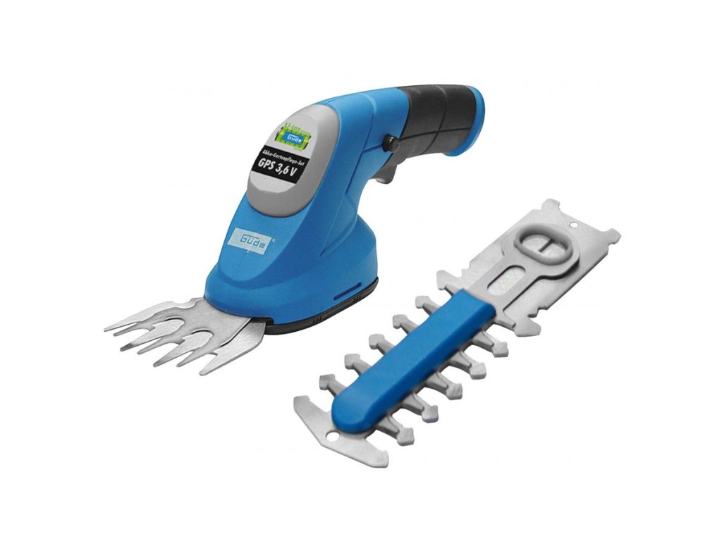 Akumulátorové nůžky Güde, určené k zastřihávání okrajů trávníků nebo tvarování okrasných dřevin.