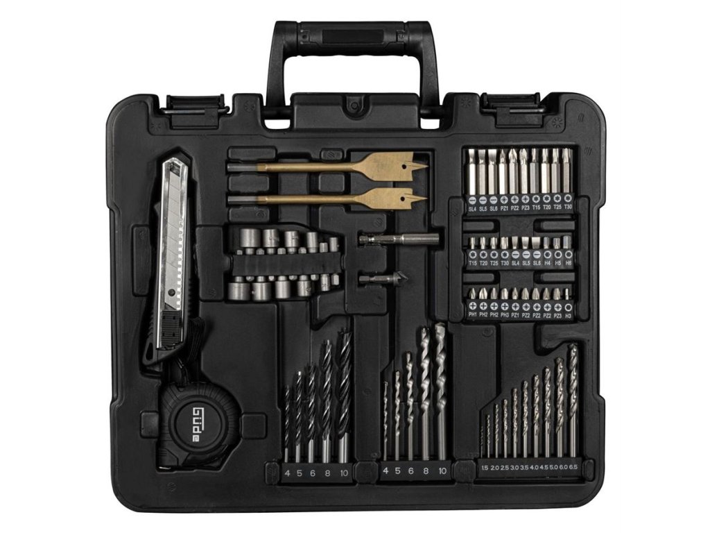 Kompaktní a výkonný vrtací šroubovák se sadou 126dílného kufru na nářadí ze skupiny 18V E³ akumulátorového systému.