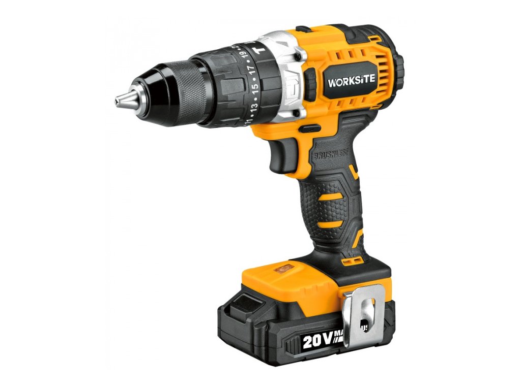 CD320H - Aku vrtačka s příklepem je výkonná 20V akumulátorová příklepová vrtačka od společnosti WORKSITE s bezkartáčovým motorem.