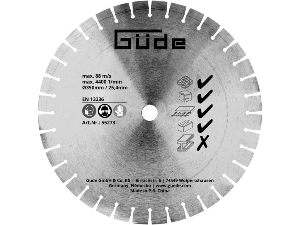 Diamantový dělicí kotouč, vhodný pro řezačku betonu GBTS 350 (55559).