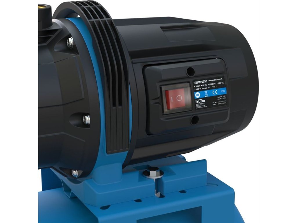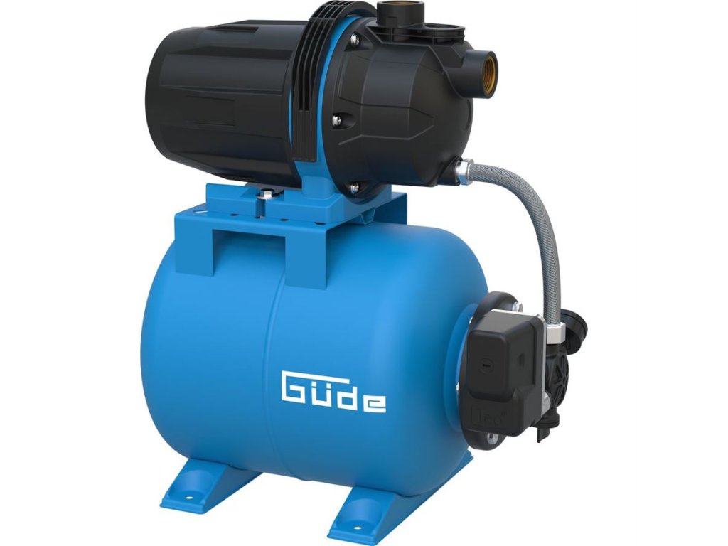 Automatická domácí vodárna Güde, určená k čerpání (čisté) užitkové vody za účelem zásobování domácnosti nebo zavlažování zahrady.