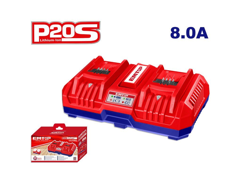› Aku nářadí › Baterie / Nabíječky pro AKU nářadí EMTOP › Duální nabíječka 20V 8.0A
