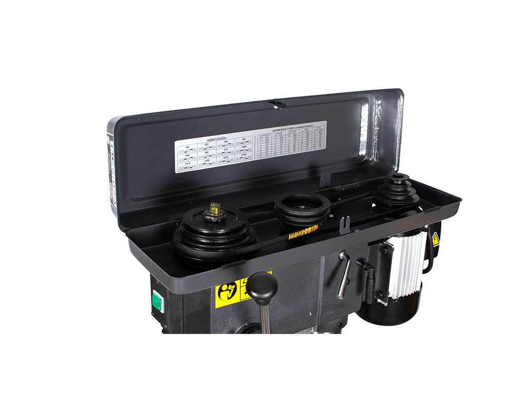 - Vrtací stůl naklápěcí (± 45°), výškově stavitelný pomocí hřebenové tyče