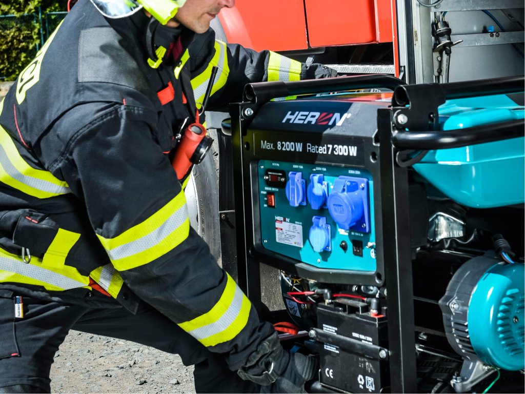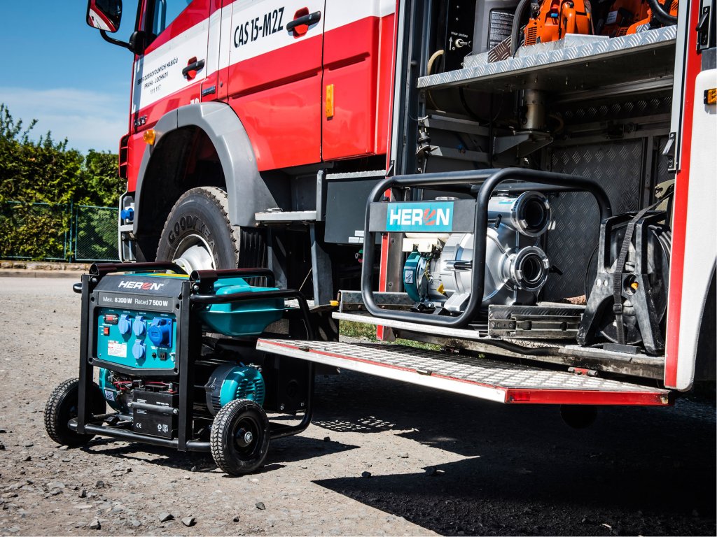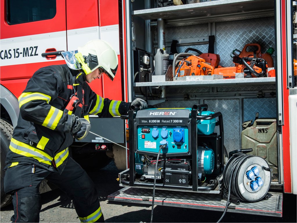 Elektrocentrála je určena k používání ve stavebnictví a při montážních pracích, ale také jako záložní zdroj elektrické energie pro mobilní servisní střediska a rekreační účely. Stroj je vybaven jednotkou AVR, která vyrovnává výstupní napětí. Proto je možné použít je k napájení jemných elektronických přístrojů, za předpokladu dodržení správného postupu používání. Sklopitelné madlo a pevná gumová kola, která jsou součástí dodávky, umožňují snadný převoz elektrocentrály na místo potřeby podobným způsobem jako cestovní zavazadlo s madlem a kolečky. Centrála je vybavena třemi 16A a jednou 32A zásuvkou s 230V, které umožňují připojit jak běžné spotřebiče, tak spotřebiče s vysokým odběrem (až 7,5kW) jako jsou např. svařovací invertory, stolní pily, velké kompresory... Dále je vybavena 12V/8,3A zásuvkou se stejnosměrným proudem a součástí příslušenství jsou rovněž nabíjecí kabely, díky nimž lze elektrocentrálou dobíjet 12V autobaterie. Díky elektrickému startu nastartujete a vypnete centrálu stiskem tlačítka jedním prstem. Tento start je zajišťován AGM bezúdržbovou baterií s dlouhou životností dobíjenou chodem elektrocentrály. Pro příjemnější práci blízko elektrocentrály jsme ji vybavili novým typem výfuku s nižší hlučností a příjemnějším zvukem.