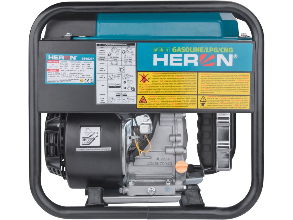 Elektrocentrála HERON je moderní zdroj elektrické energie určený všem, kteří potřebují spolehlivý, úsporný a přenosný výkon. Díky digitální invertorové technologii poskytuje čisté a stabilní napětí vhodné i pro citlivou elektroniku, přičemž zachovává nízkou hmotnost a kompaktní rozměry. Oproti běžným modelům s AVR regulací nabízí vyšší účinnost a efektivnější provoz, což z ní činí ideální zařízení pro stavebníky, servisní techniky i rekreační využití. Srdcem centrály je čtyřtaktní motor o výkonu 7,5HP, který umožňuje dlouhodobý elektrický výkon 3,8kW a krátkodobě až 4,2kW. Tento výkon postačí pro napájení většiny nářadí, čerpadel či topných spotřebičů. Výhodou je také možnost provozu na tři druhy paliva – benzín, LPG a CNG. Při provozu na benzín a LPG je výkon shodný, zatímco při použití CNG je maximální výkon 3,6kW a provozní výkon 3,2kW. Díky tomu lze zařízení ekonomicky využívat i v místech s omezeným přístupem k tradičním pohonným hmotám, například při dlouhodobém provozu. Dvojice zásuvek 230V/16A umožňuje současné použití více zařízení a 12V výstup s autozásuvkou poskytuje napájení drobných spotřebičů s odběrem do 8,3A – například USB nabíječek, chladicích boxů, vysavačů apod. Přiložené kabely zároveň umožňují nouzové nabíjení autobaterií. Digitální panel zobrazuje celkový i aktuální čas provozu, výstupní napětí a frekvenci. Velkou výhodou tohoto modelu je kompaktnost: invertorová technologie umožnila snížit hmotnost oproti běžným AVR centrálám téměř o 40% na 28 kg a zároveň zmenšila objem o třetinu. Díky tomu se zařízení snadno přenáší a nevyžaduje velký prostor pro skladování. Robustní rám zajišťuje stabilitu a bezpečnou manipulaci i v náročném terénu. Elektronická regulace výkonu automaticky přizpůsobuje otáčky motoru aktuálnímu zatížení, čímž snižuje spotřebu. HERON tak představuje ideální volbu pro ty, kdo hledají tišší, lehčí a efektivnější elektrocentrálu s výkonem téměř 4kW v moderním přenosném provedení. Nabízí kombinaci vysokého výkonu, mobility a spolehlivosti při zachování příznivé ceny.