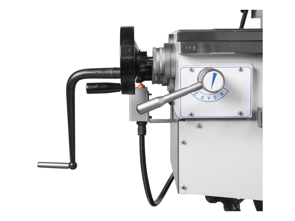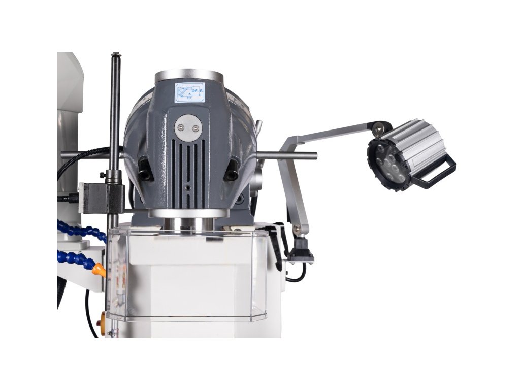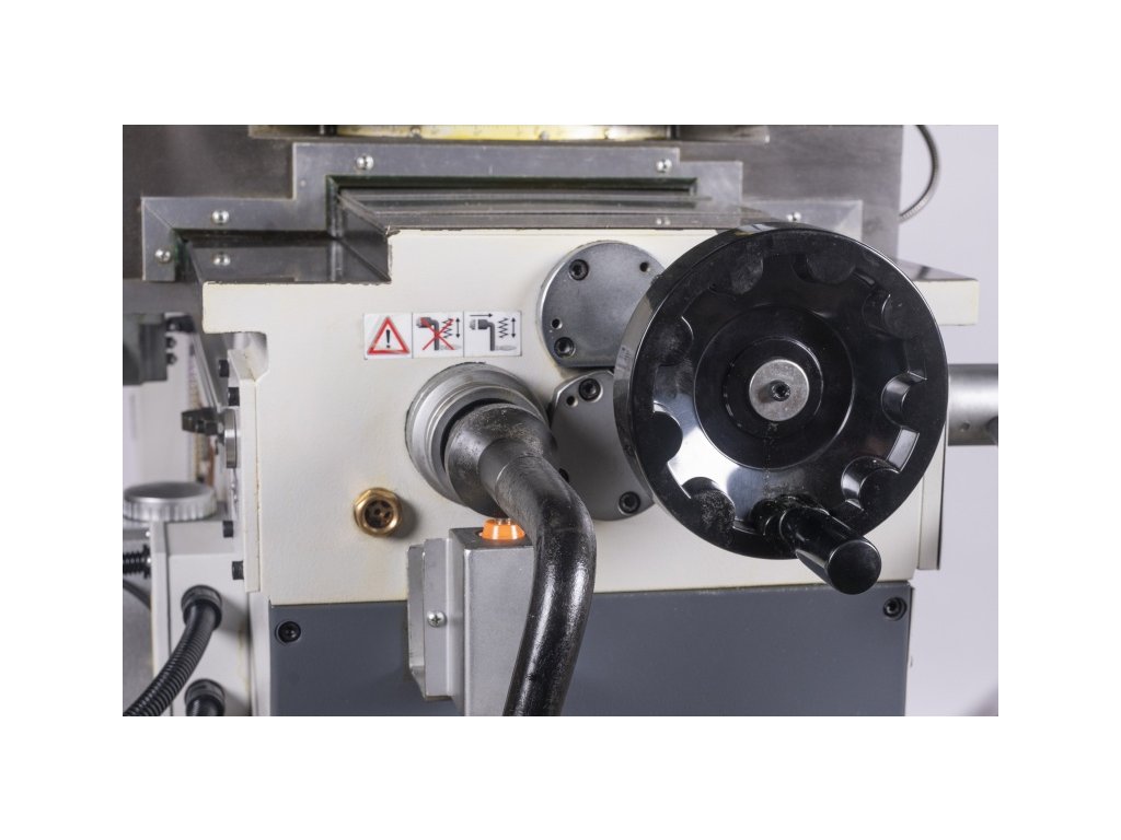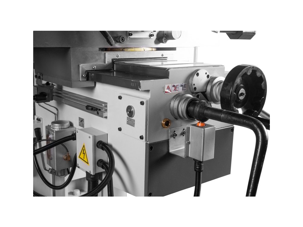 Frézovací hlava otočná v úhlu 360°, pojezd 1000 mm v ose X a strojní posuvy poháněné servomotorem činí tento obráběcí stroj velmi univerzálním.