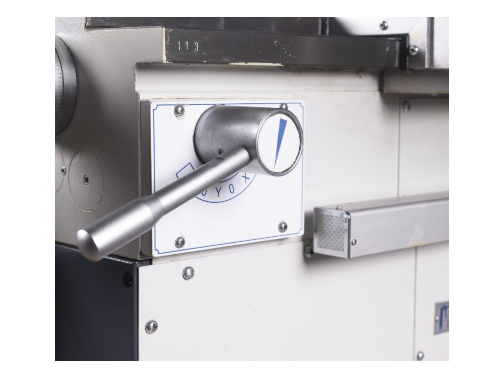 - Ovládání pojezdu stolu v ose x se provádí na přední straně stolu