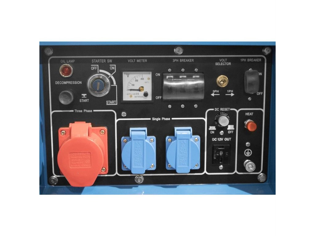 • 1 x zásuvka 400~, 2 x zásuvka 230 V~, 1 x výstup 12 V=