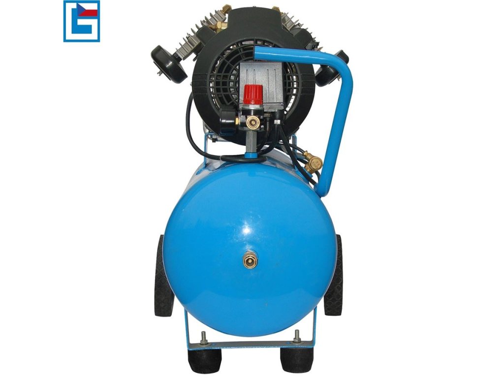 Tlaková nádoba: 50 l, ventil pro vypouštění kondenzátu, přední podpěra nádoby s gumovými patkami, plastová kola s gumovým běhounem/transportní madlo pro jednoduchou manipulaci.