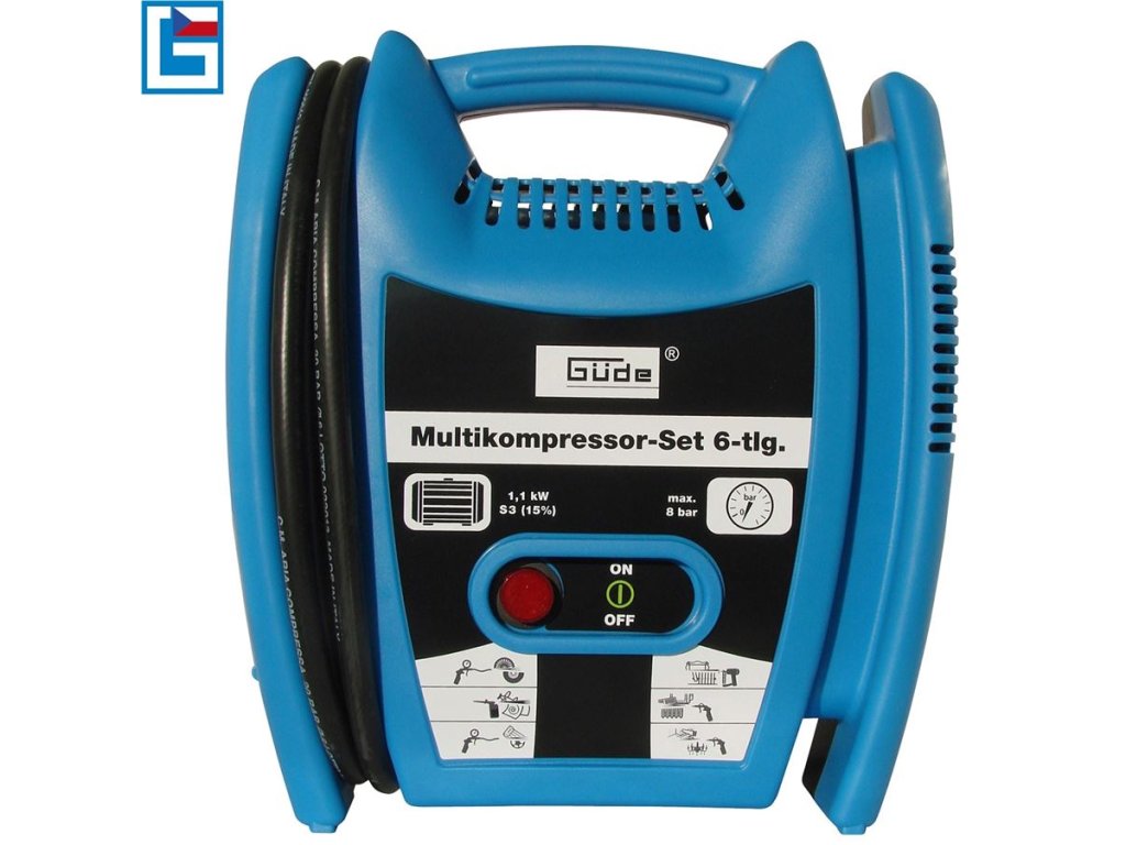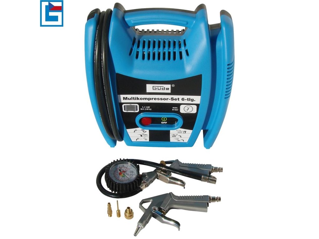 Přenosný bezolejový kompresor, určený k běžnému domácímu použití (-> plnění míčů/matrací/pneumatik jízdních kol, vyfukování nečistot apod.).