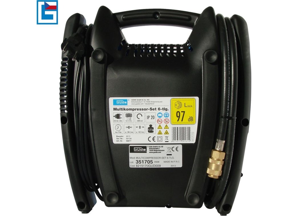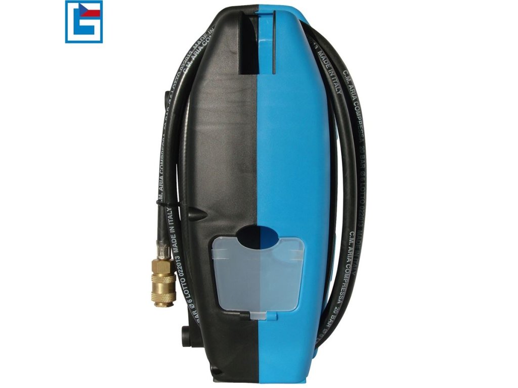 Vybavení: 2,5 m tlaková hadice s rychlospojkou, úložný box, transportní madlo. Příslušenství: ofukovací pistole, pneu hustilka, adaptéry pro nafukování míčů/matrací/pneumatik.
