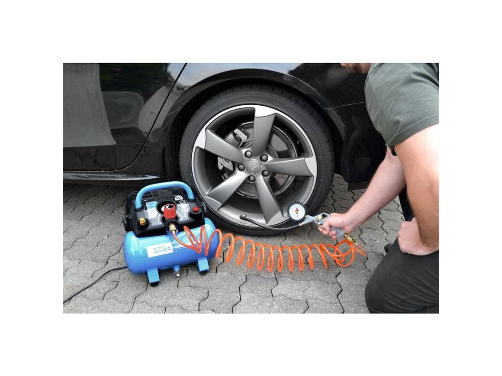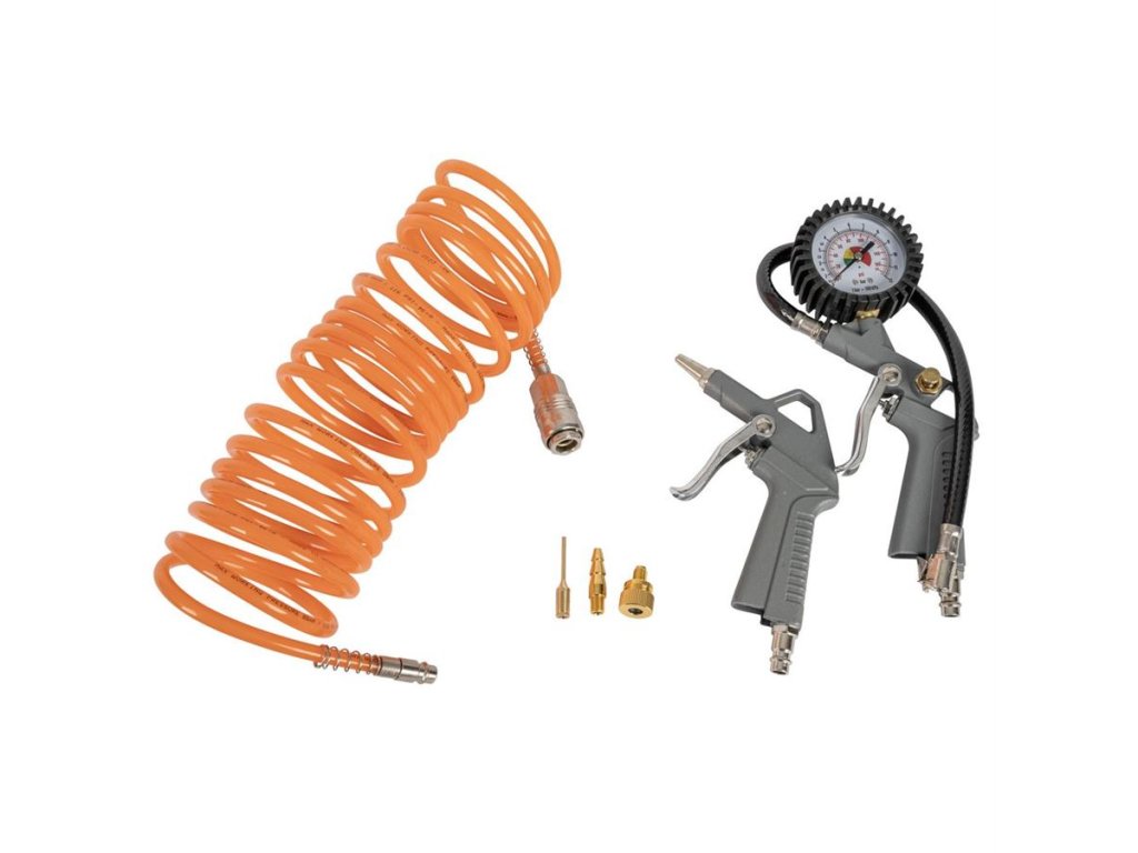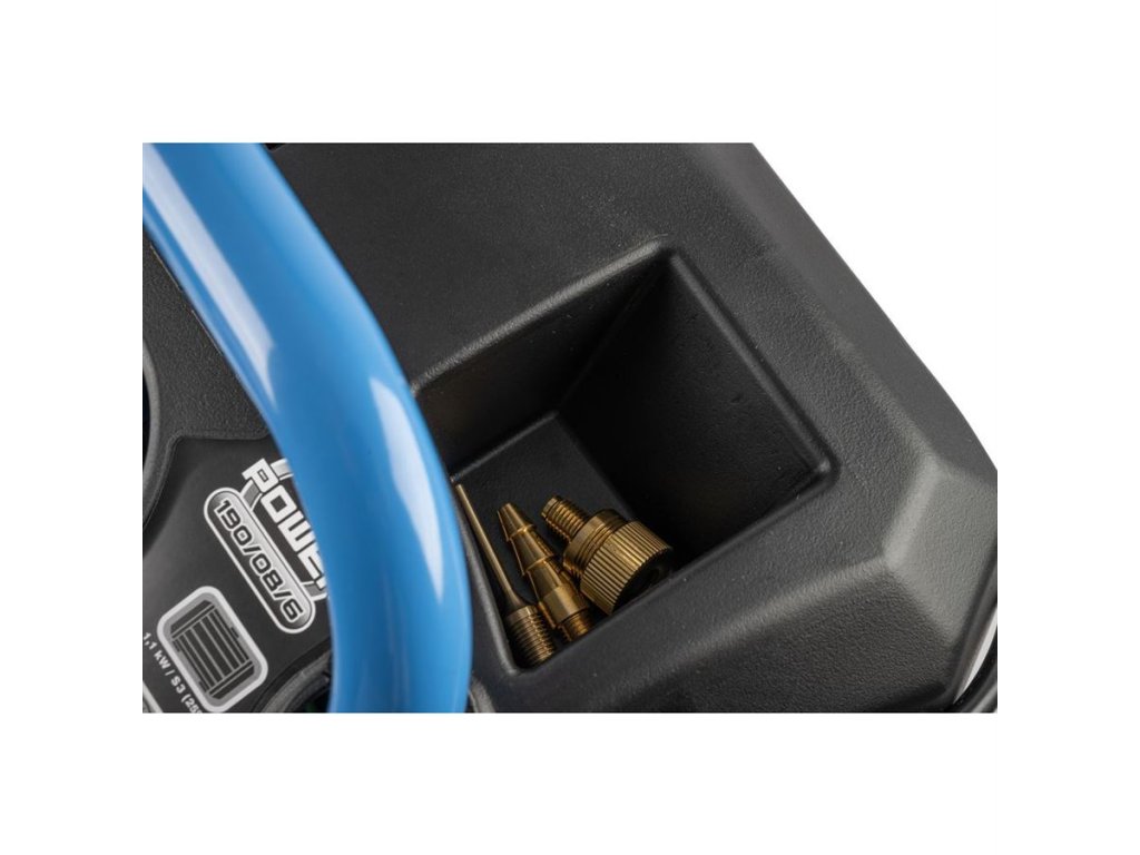 Příslušenství: ofukovací pistole, pneu hustilka, spirálová hadice 5 m, adaptéry pro nafukování míčů/matrací/pneumatik.