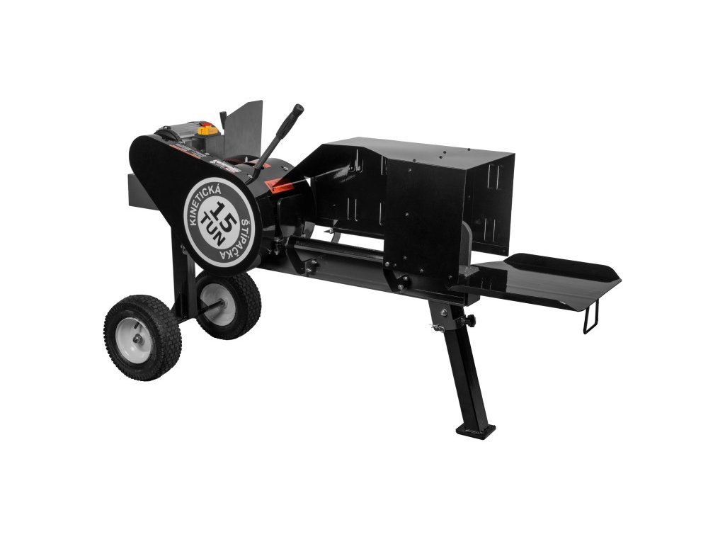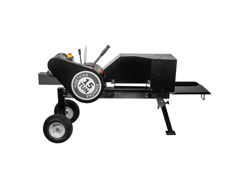 KSP-15/520E Kinetická štípačka na dřevo je mechanické zařízení, kde je štípací energie předána za pomoci elektro-motoru, setrvačníku a převodového mechanizmu téměř najednou a působí na poleno obdobně jako při ručním sekání, ale bez vaší námahy a se stálým kinetickým tlakem. Mechanizmus se okamžitě vrací zpět a tím odpadá čas strávený plněním olejového pístu a jeho zpětné přepouštění. Jedná se o geniální systém s vyšší rychlostí a menšími nároky na údržbu a servis, to vše při dodržení nejpřísnějších norem na bezpečnost a ochranu zdraví.