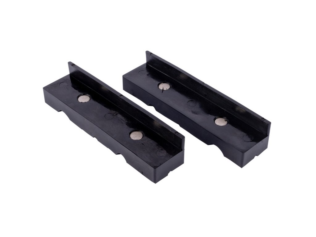- Magnety: Integrované magnety bezpečně přidržují vložky v čelistech svěráku, což zaručuje stabilní a spolehlivé uchycení během práce.
