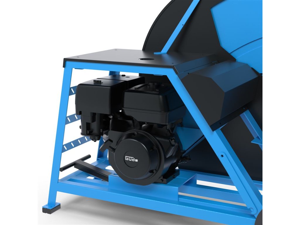 Výkonná benzínová pila Güde, určená k řezání palivového dřeva.