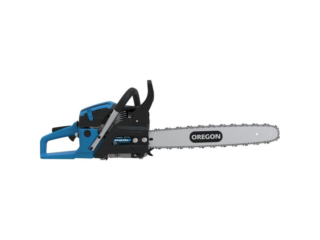 Příslušenství: vodicí lišta OREGON SINGLE RIVET 18“, pilový řetěz ⅜“ OREGON, kryt lišty, nádobka pro namíchání palivové směsi, sada nářadí.