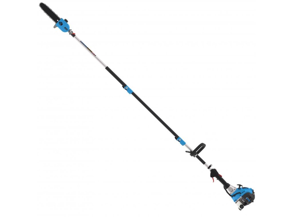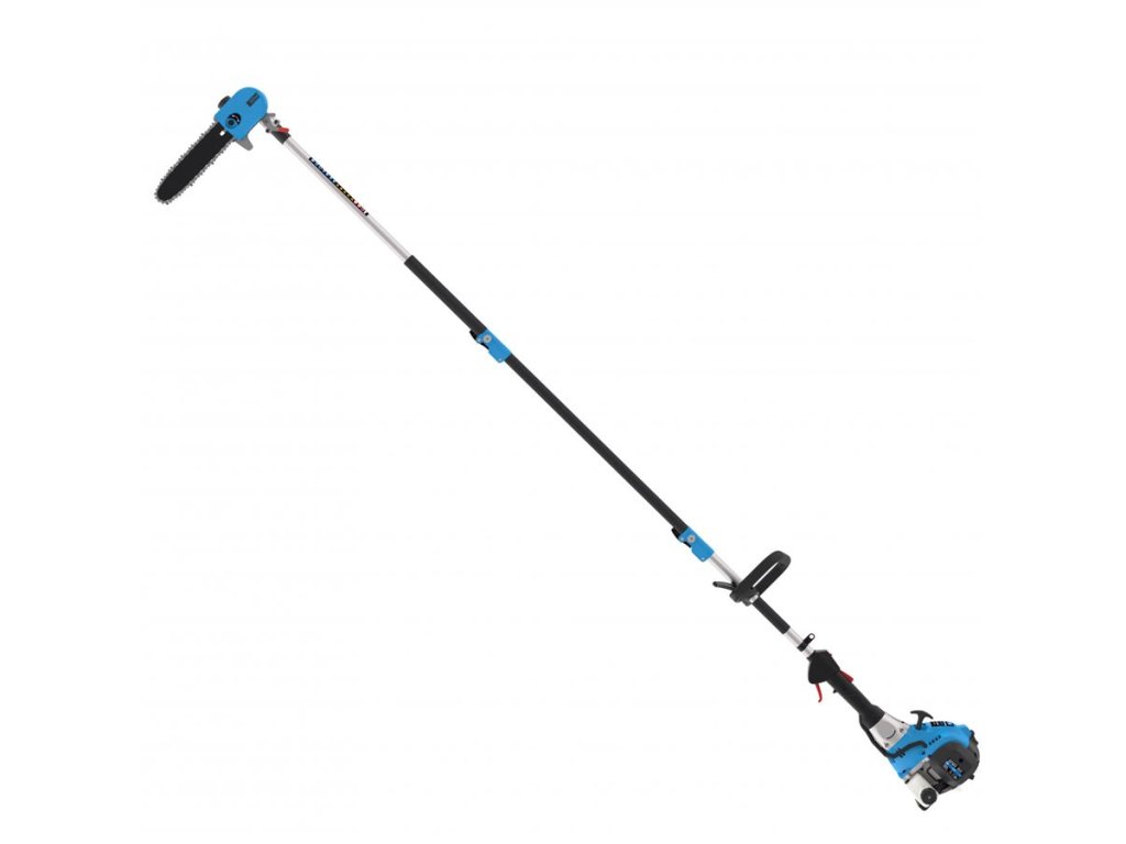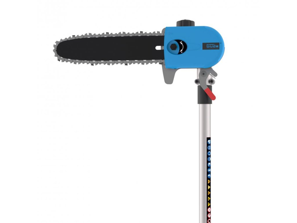 Benzínová vyvětvovací pila Güde, určená k prořezávání vzrostlých stromů ze země.
