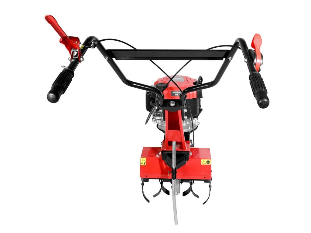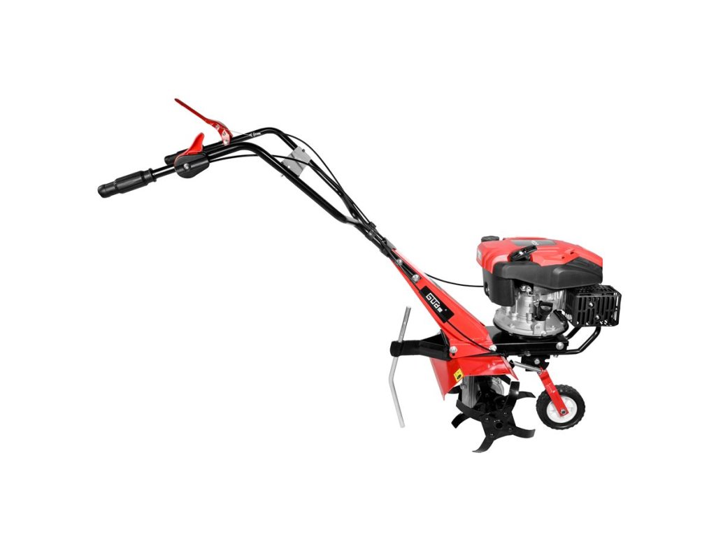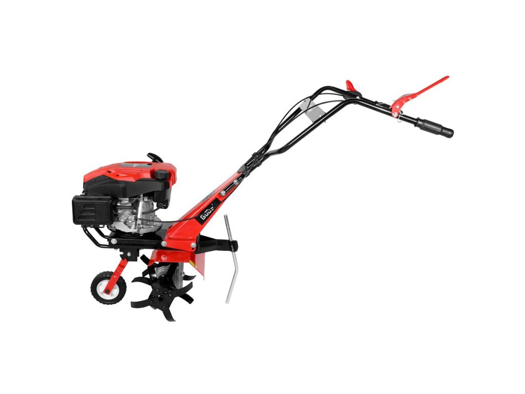 | Vybavení - funkce • zkypřování písčitých (hlinitých) půd • rozmělnění hrud • zapravení kompostu, rašeliny, substrátů, hnojiv atp. • 4 ocelové nože ø 27 cm • 3stupňové nastavení hloubky kultivace 12,5 - 26 cm • jednoválcový 4taktní motor • reverzní startovaccí systém • široká ergonomická řidítka • sklopné transportní kolo