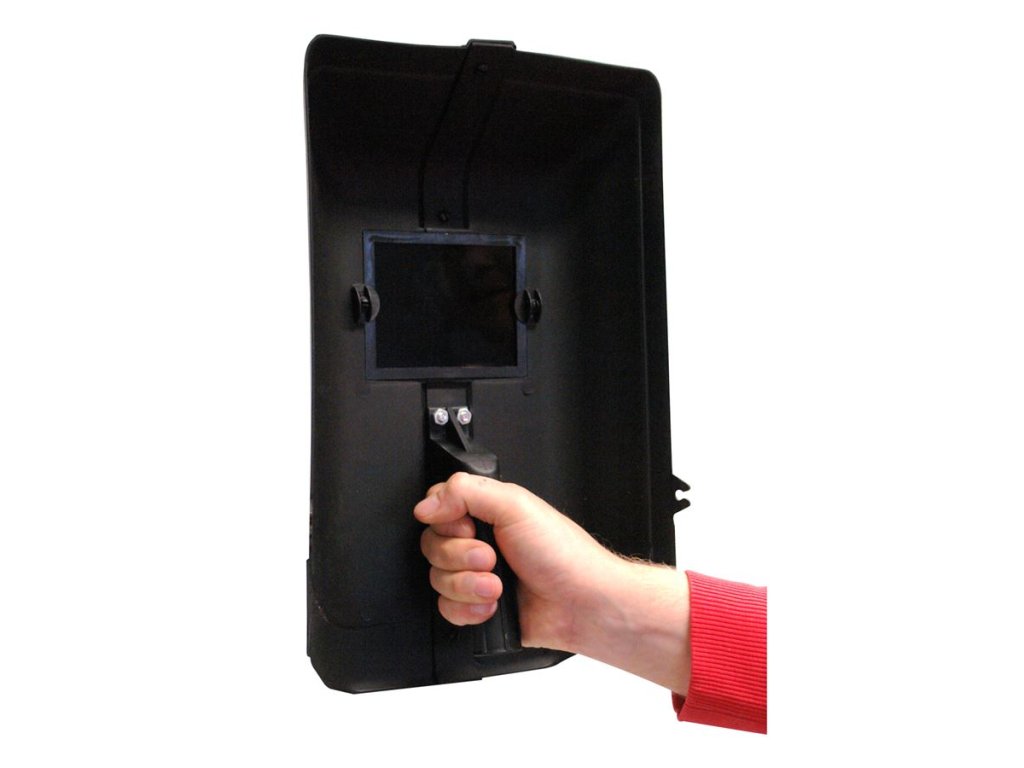 Svářečský štít, určený k ochraně zraku/obličeje/ruky při elektrosvářečských pracích menšího rozsahu (MMA).