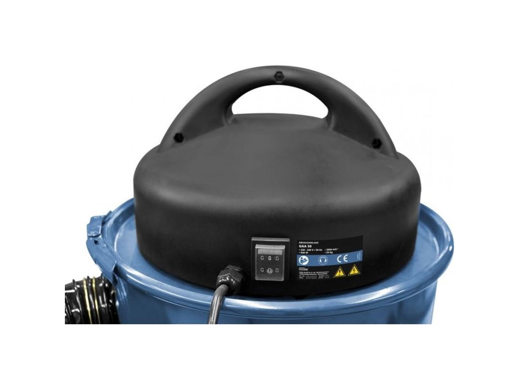Konstrukce: kovová sběrná nádoba, 2 m ohebná sací hadice (-> průměr: 100 mm; včetně redukce pro všechny obvyklé typy přípojek odsávání stolních pil/obráběcích strojů: 34/40/45/67/100 mm).