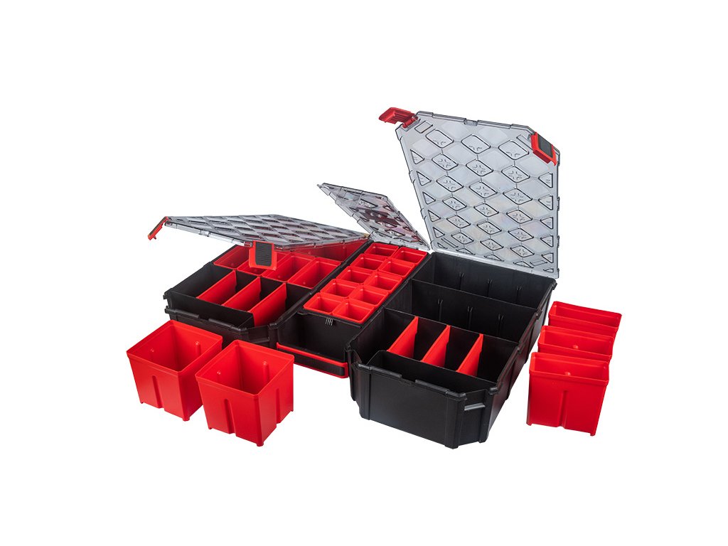 Organizér má 32 míst a z toho je 22 vyjímatelných a dále má 6 (červené) vyjímatelných přepážek.