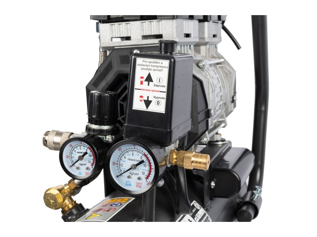 - Kompresor je vybaven manometrem vzdušníku i manometrem pro kontrolu pracovního tlaku
