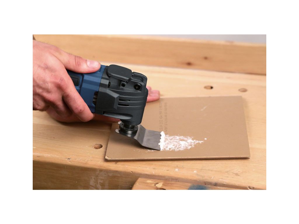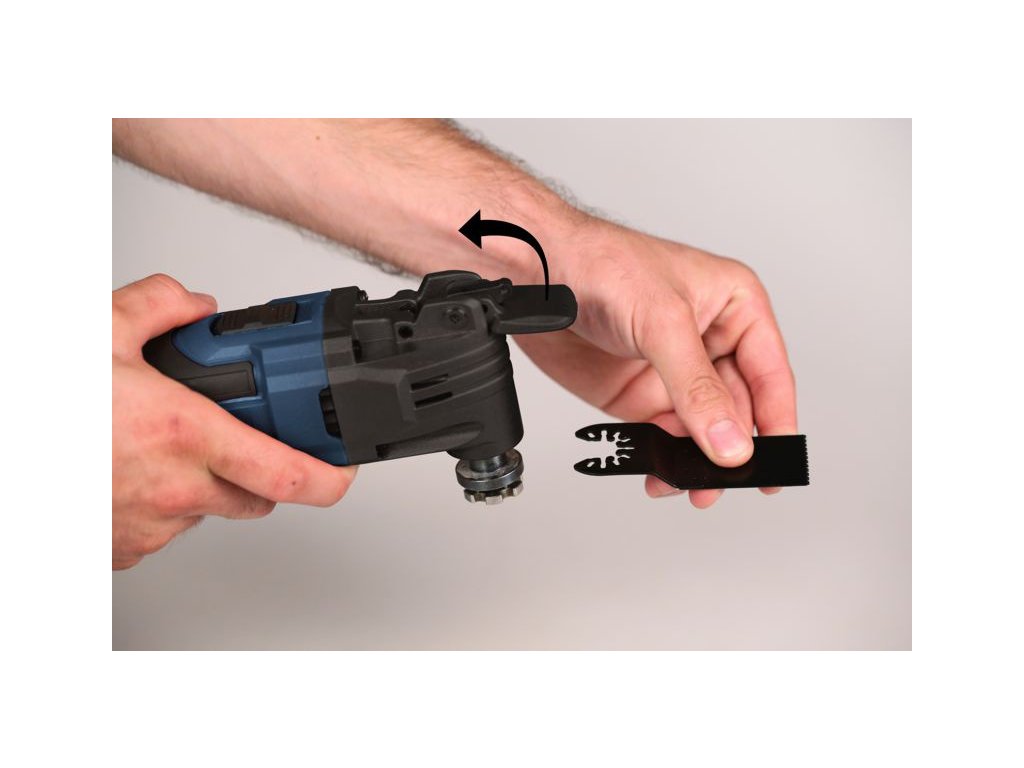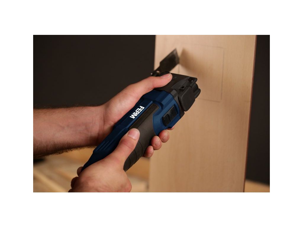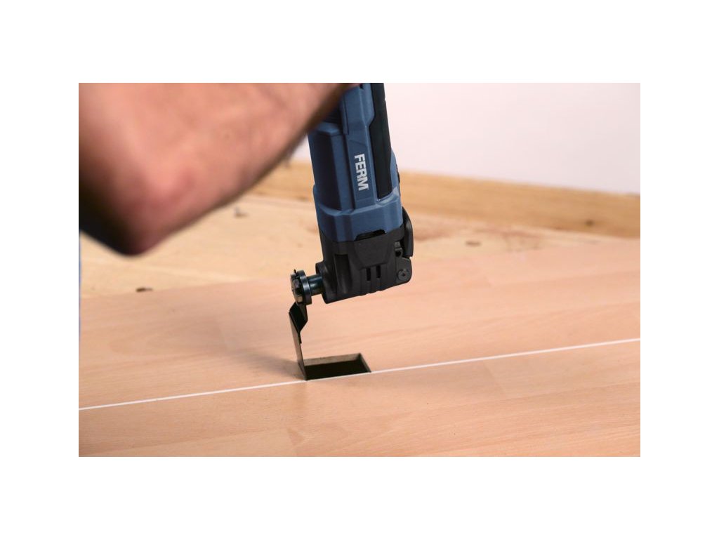 OTM1007 - Multifunkční oscilační bruska je určená pro řezání a dělení dřevěných materiálů, sádrových materiálů, neželezných kovů a upevňovacích prvků (např. nekalených hřebíků, svorek). Rovněž je vhodná pro práci s měkkými obkladačkami a pro broušení a škrábání malých ploch za sucha. Je obzvláště vhodná pro práci blízko okrajů a zarovnávání.