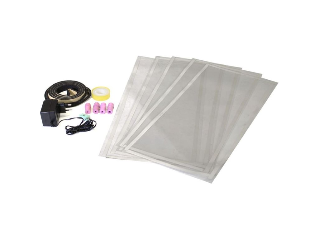 Příslušenství: sada 4 keramických trysek (Ø 4-5-6-7 mm), ochranné fólie (5), 12 V síťový adaptér, těsnicí a teflonová páska.