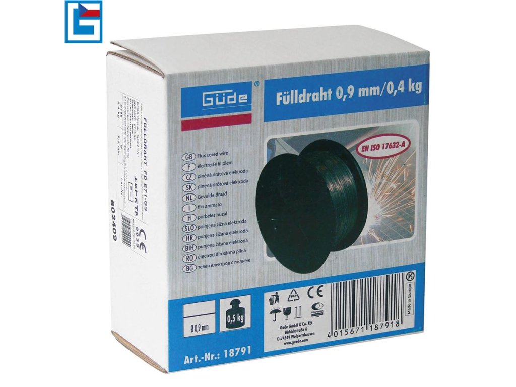 Trubičkový svářecí drát, určený pro svařování metodou FLUX (-> svařování v ochranné atmosféře bez použití plynové lahve, ochranný plyn se uvolňuje rozkladem tavidla z vnitřní náplně elektrody).