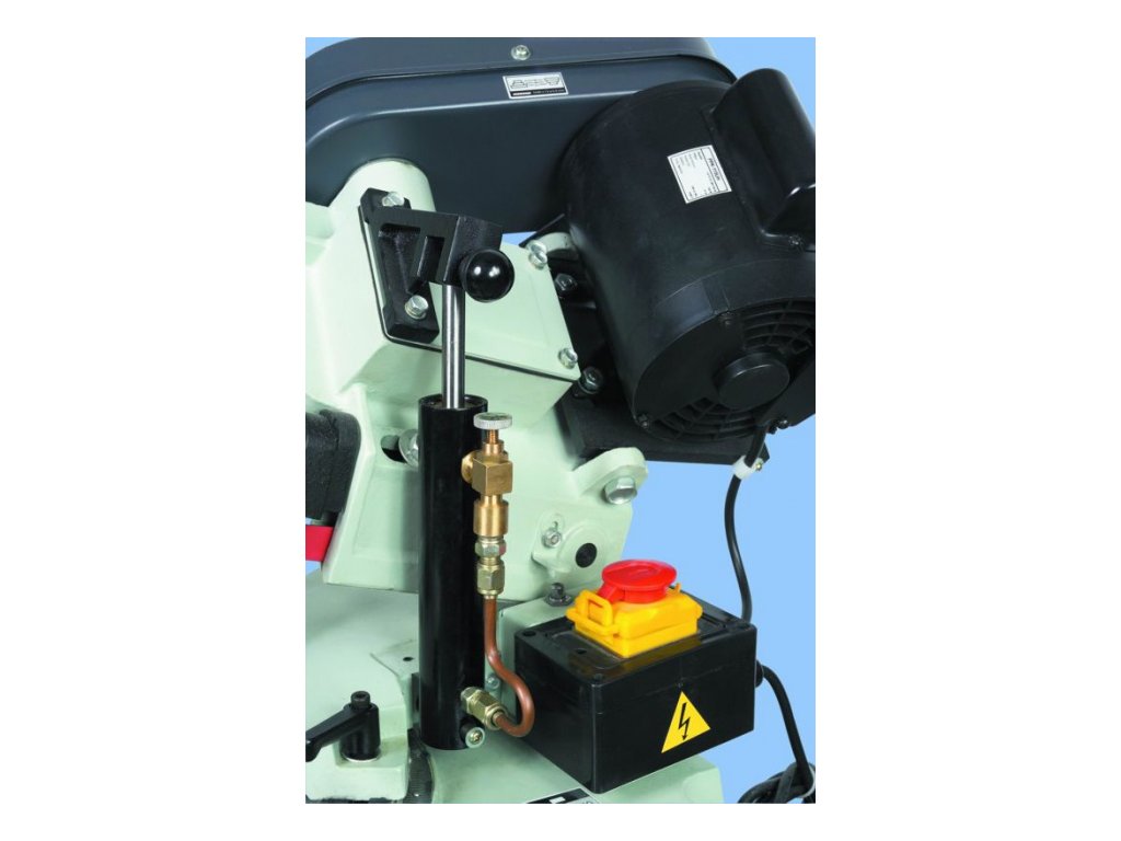- Plynulé klesání ramene pily s regulací rychlosti zdvihu hydraulického válce
