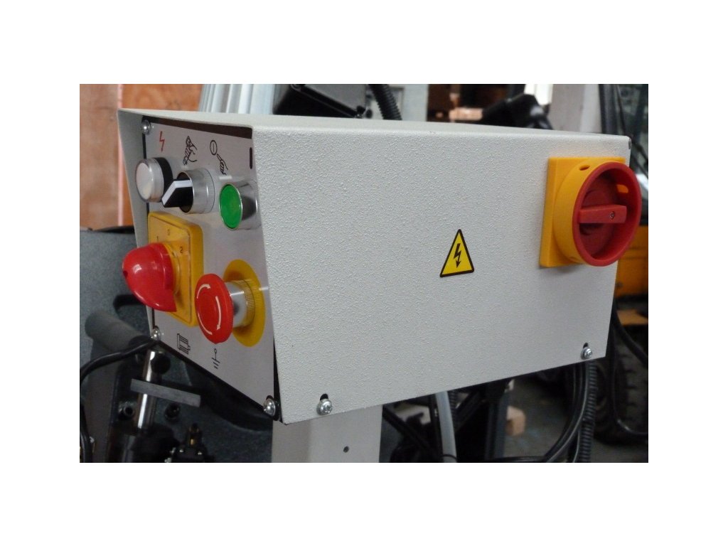 - Hlavní vypínač v podpěťovým spouštěčem a jištěním motoru