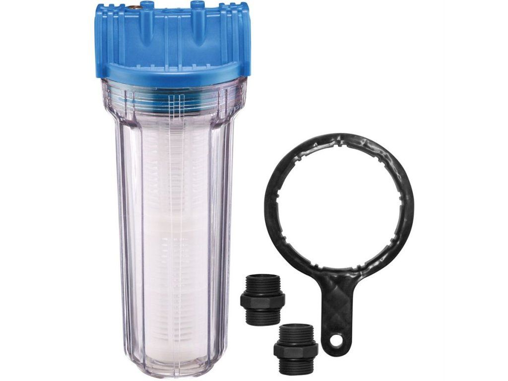Snadná údržba i montáž (-> mezi sací hadici a domácí vodárnu). Konstrukce: průhledná nádobka z PVC, omyvatelné filtrační kartuše, včetně 2 závitových redukcí.