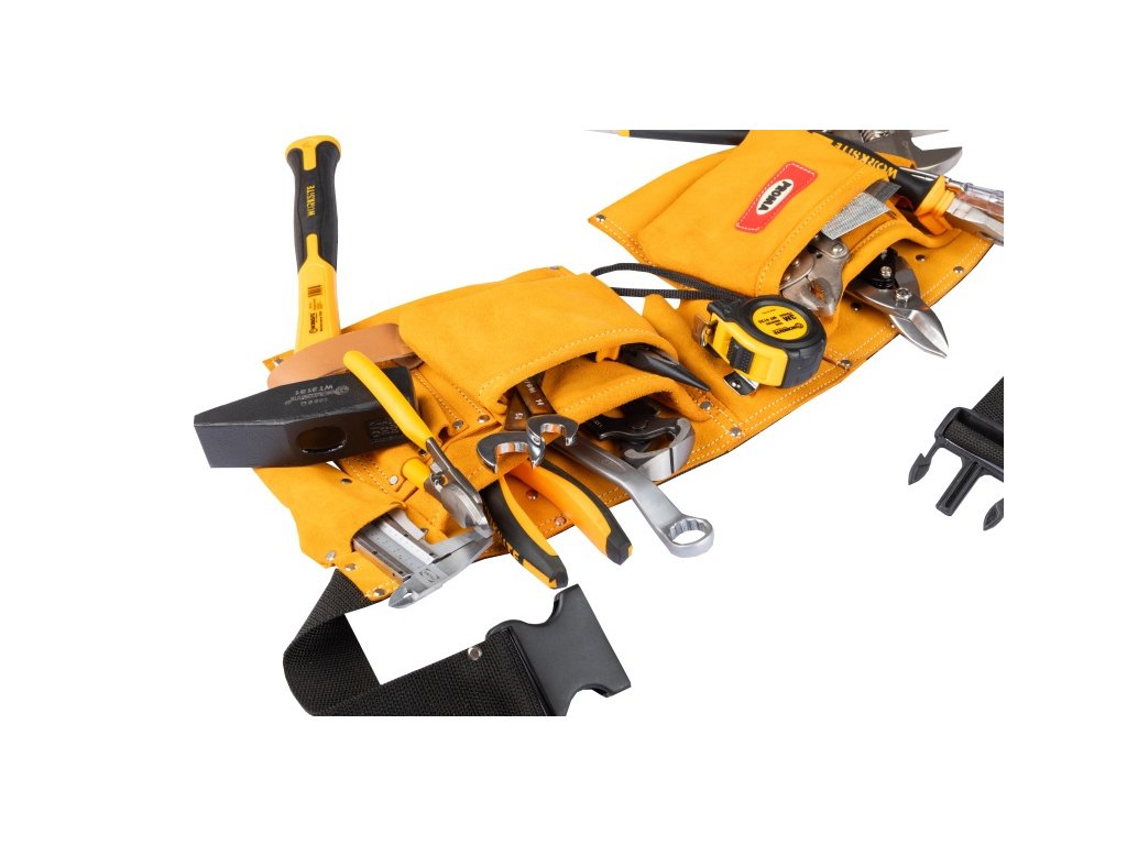 Nářaďový pás Proma RPI-413 je spolehlivým parťákem jak pro profesionální řemeslníky, tak pro domácí kutily. Je navržen tak, aby usnadnil organizaci vašeho nářadí, pomůcek a drobného příslušenství, jako jsou hřebíky a šrouby. Díky široké škále kapes na drobný materiál a praktickým poutkům pro kladiva a podobné nástroje máte vše důležité neustále po ruce.