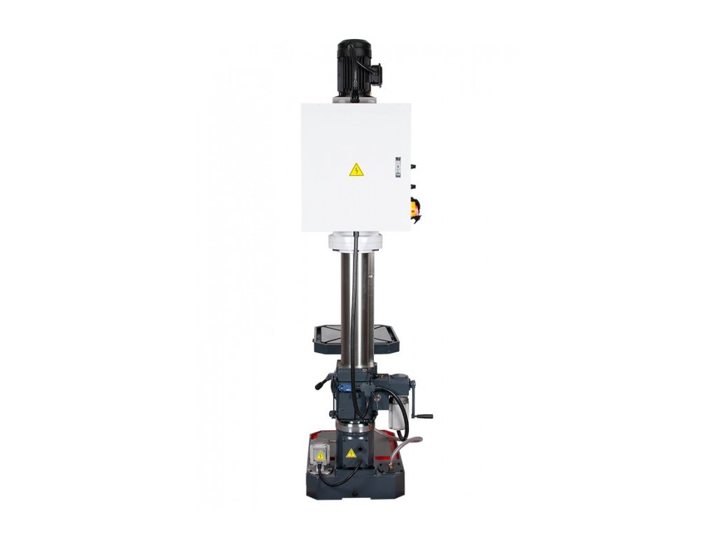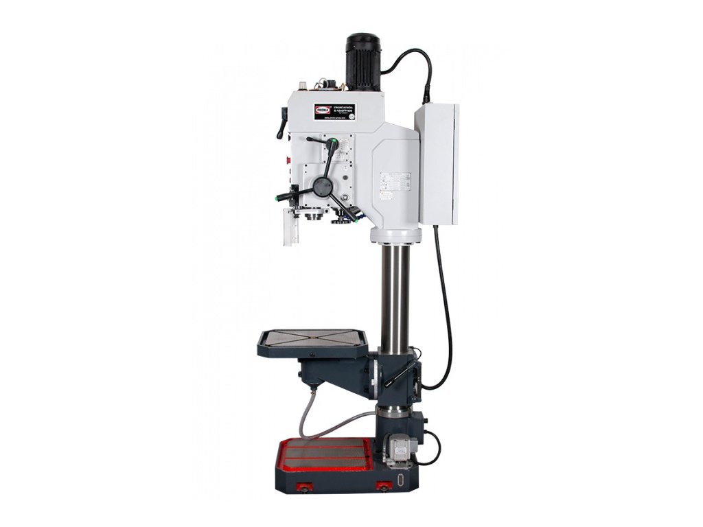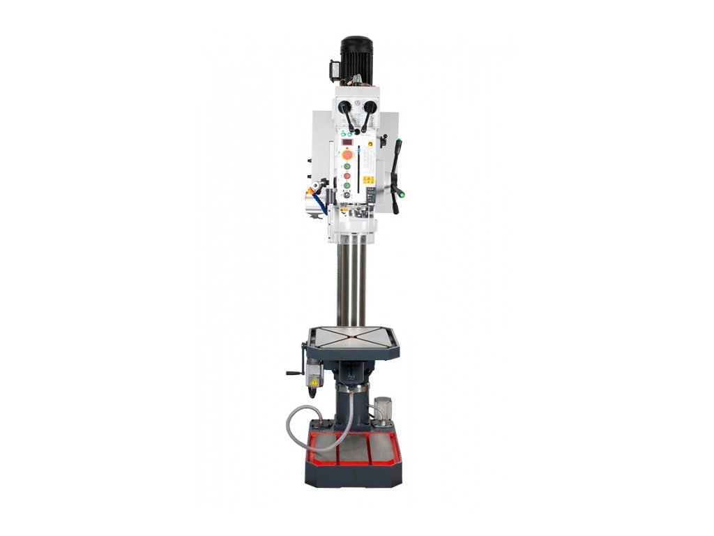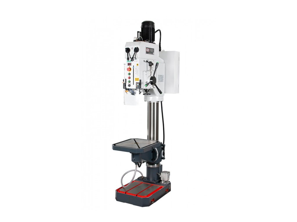 Převodová sloupová průmyslová vrtačka PROMA S-1840FP/400 je těžká vrtačka s velkým rozsahem otáček, automatickým posuvem a vrtacím stolem v sériové výbavě.