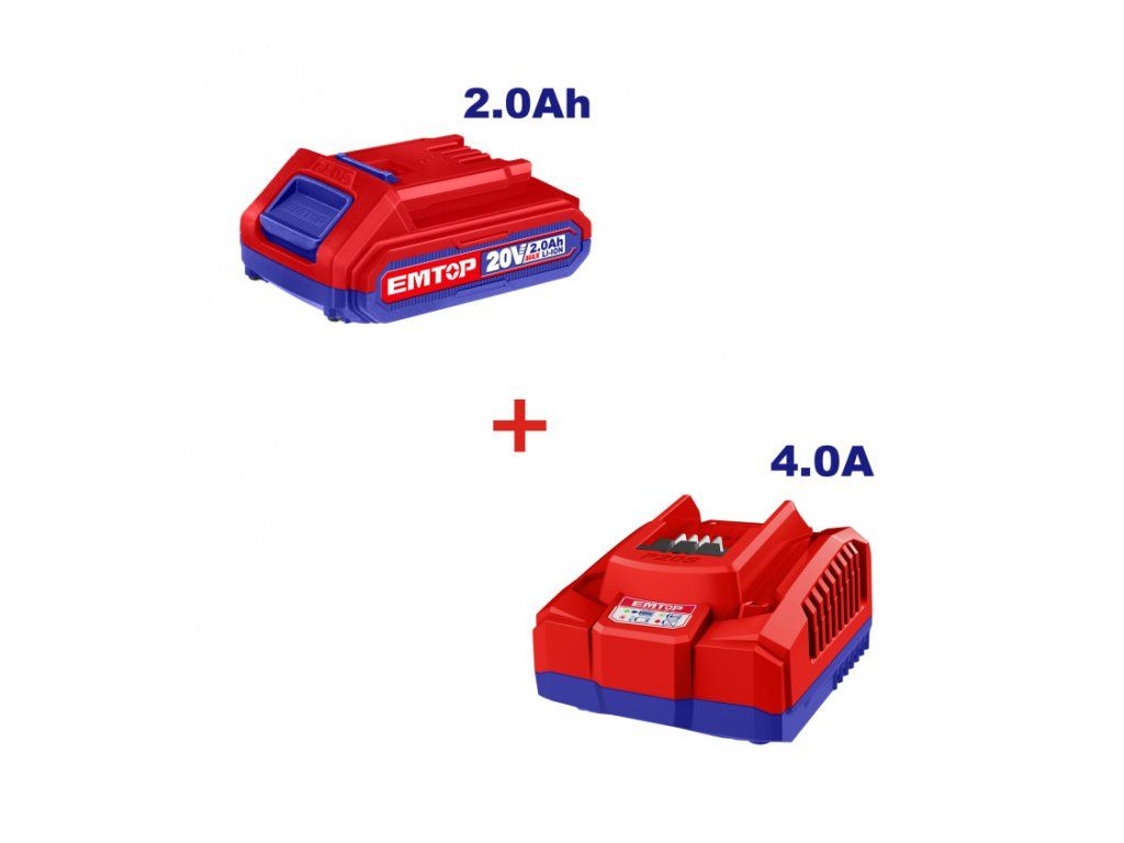 › Aku nářadí › Baterie / Nabíječky pro AKU nářadí EMTOP › SET - nabíječka 20V 4.0A + akumulátor 20V 2.0Ah