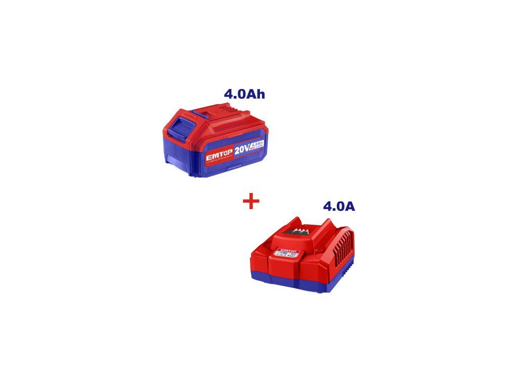 › Aku nářadí › Baterie / Nabíječky pro AKU nářadí EMTOP › SET - nabíječka 20V 4.0A + akumulátor 20V 4.0Ah