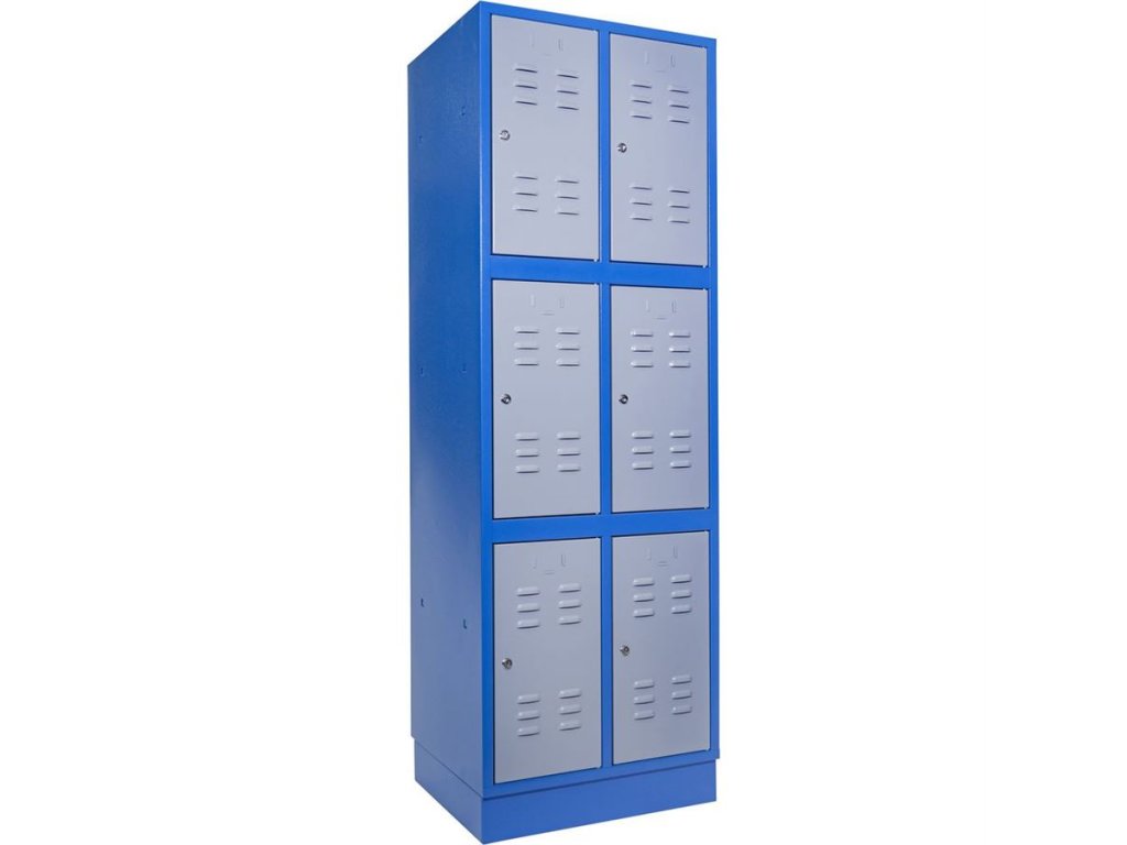 Vícekomorová skříň s univerzálním využitím ve výrobní i nevýrobní sféře (-> školní šatny, sportoviště, servisní dílny, výrobní provozy apod.).