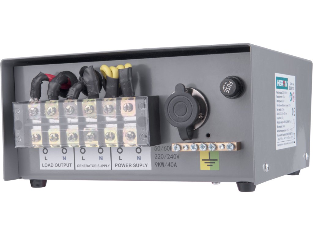 ATS spínací skříňka je určena k automatickému nastartování elektrocentrály HERON při výpadku napětí v elektrické síti a k jejímu automatickému vypnutí při obnovení napětí v elektrické síti. Tento model ATS skříňky je primárně určený pro elektrocentrálu HERON® 8896326.