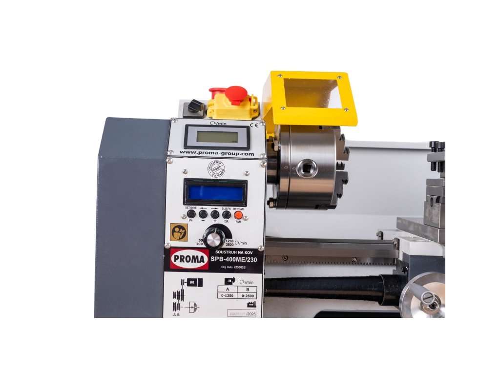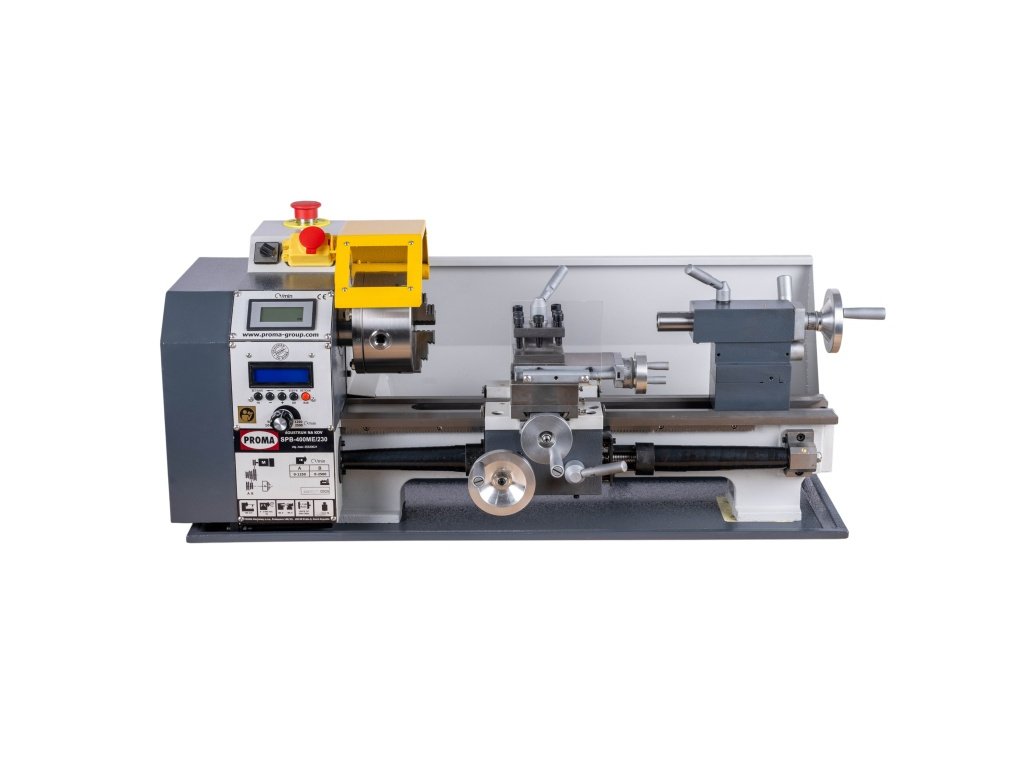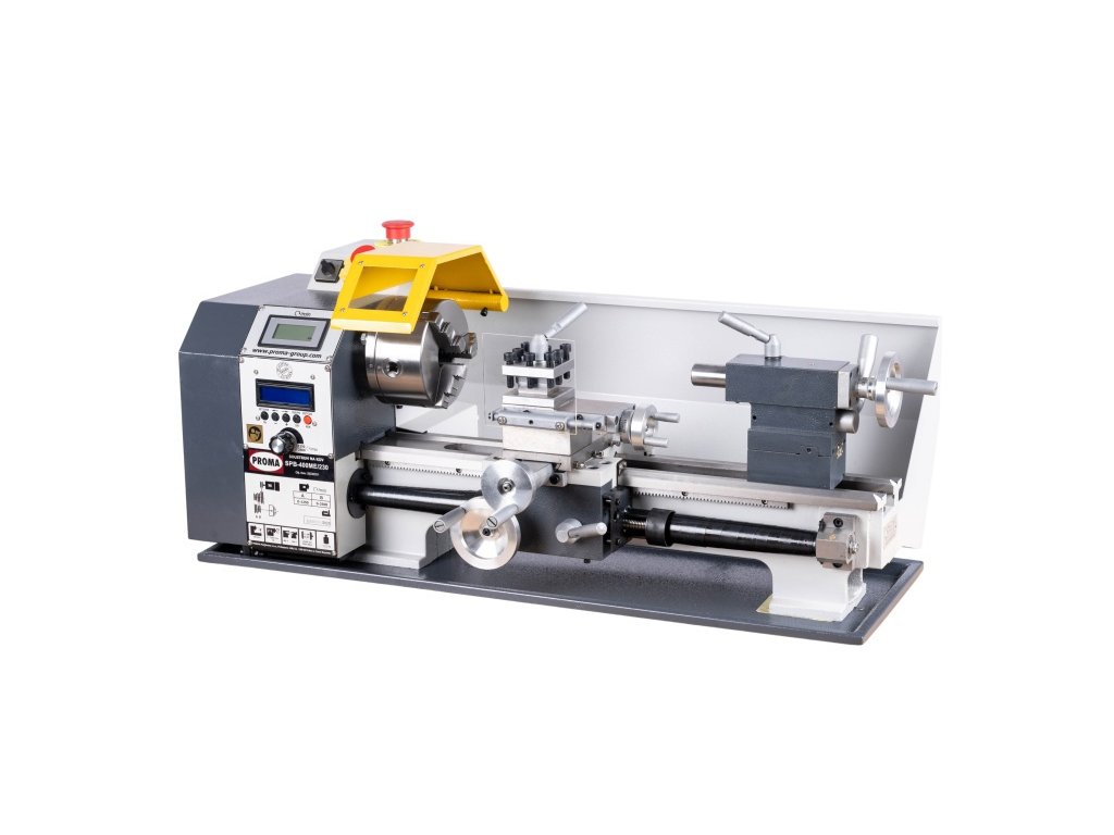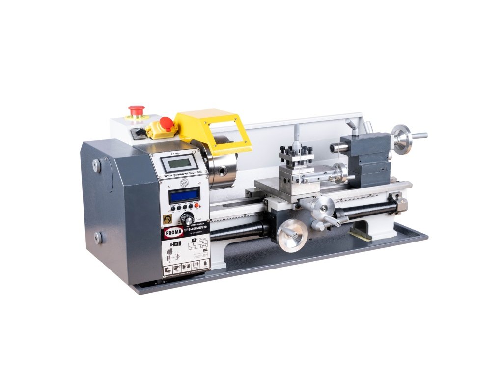 Stolní soustruh na kov PROMA SPB-400ME/230 s točným průměrem nad ložem 220mm a elektronicky řízeným podélným posuvem