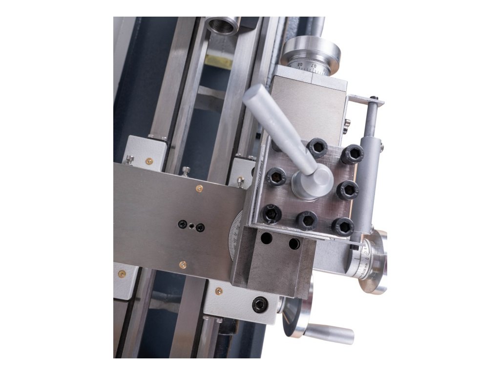 - Sériově dodáván s tažným šroubem k řezání závitů a pro podélný strojní posuv