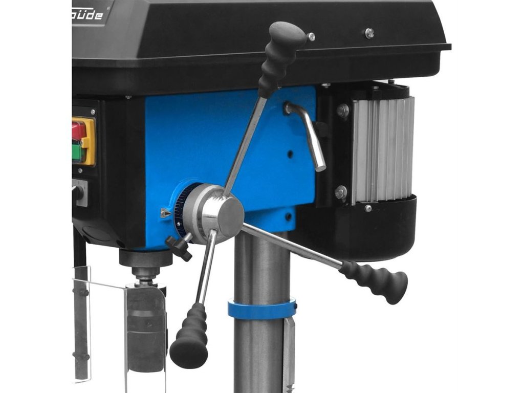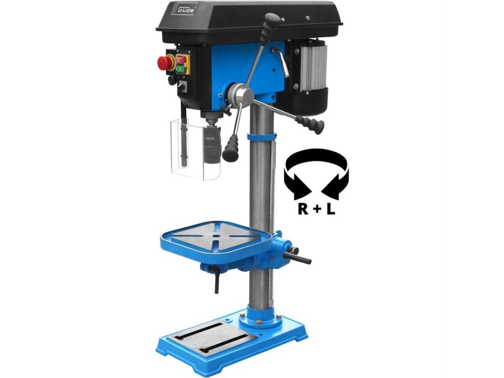 Robustní stolní vrtačka GÜDE, určená k vrtání kovů, dřeva nebo plastů v podmínkách údržbářských i řemeslnických dílen.