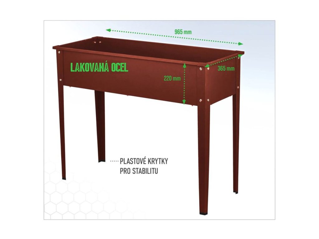 | Rozměry pěstební vany | 965 x 365 x 220 mm |