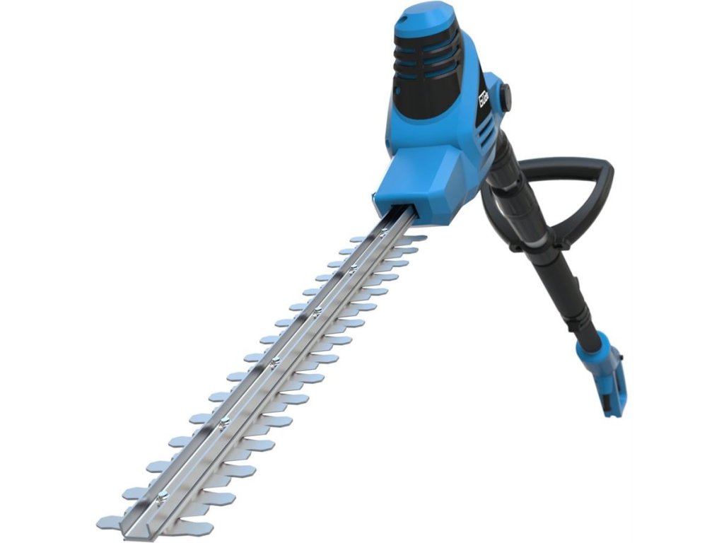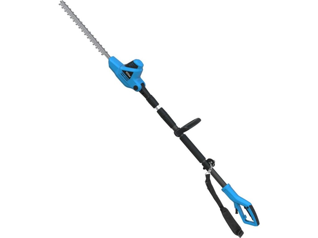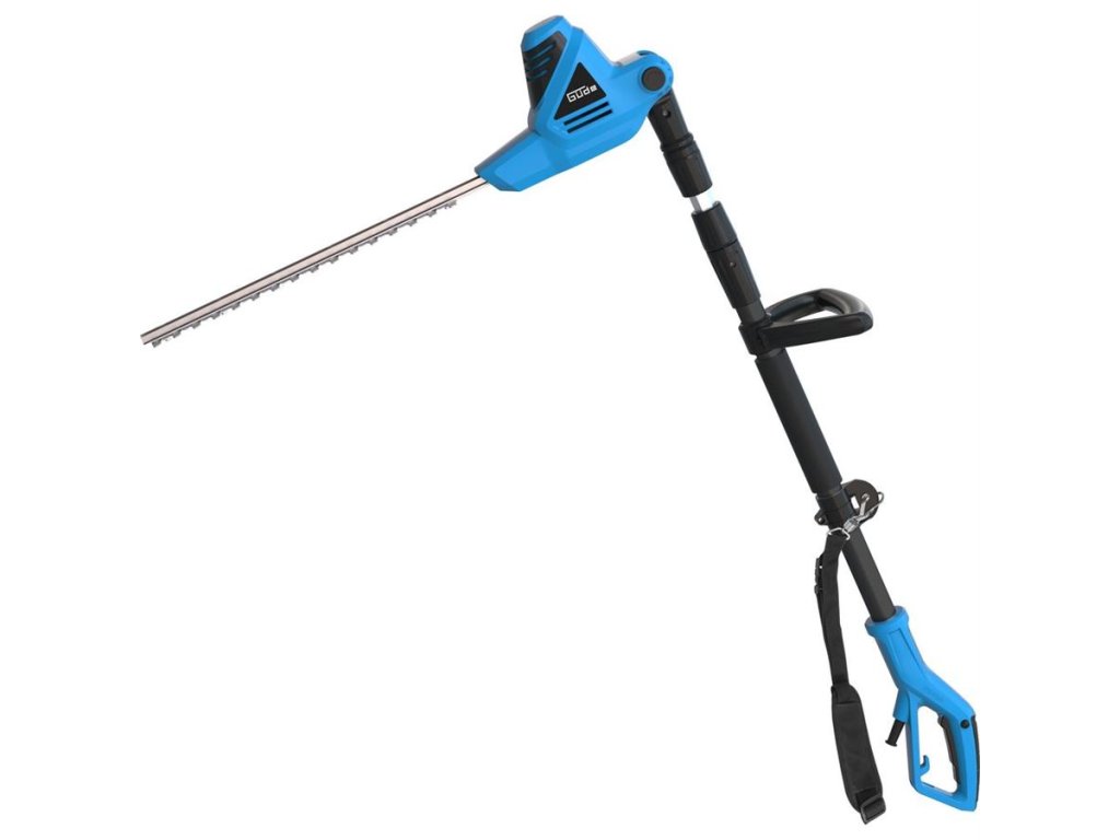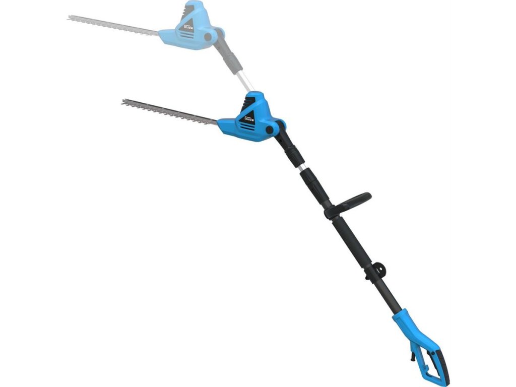 Elektrické nůžky Güde, určené ke stříhání vysokých živých plotů (keřů) ze země.