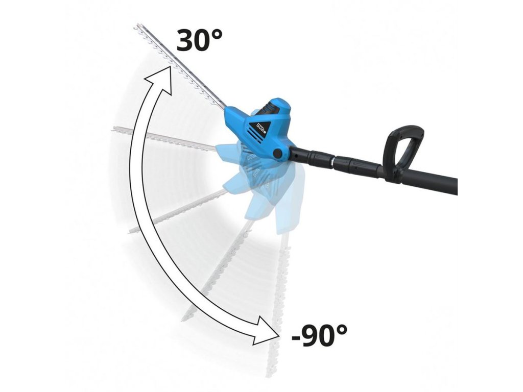• jednoduché nastavení vhodného úhlu postřihování od + 30 po - 90° jediným stisknutím tlačítka sklápění