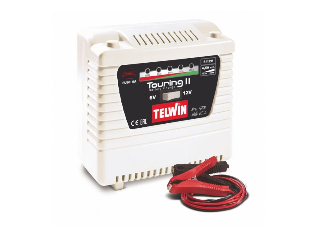 TOURING 11 Tronic je nabíječka autobaterií pro olověné baterie s elektrolytem 15-55 Ah, vhodná pro malá auta s benzinovým motorem, motocykly.